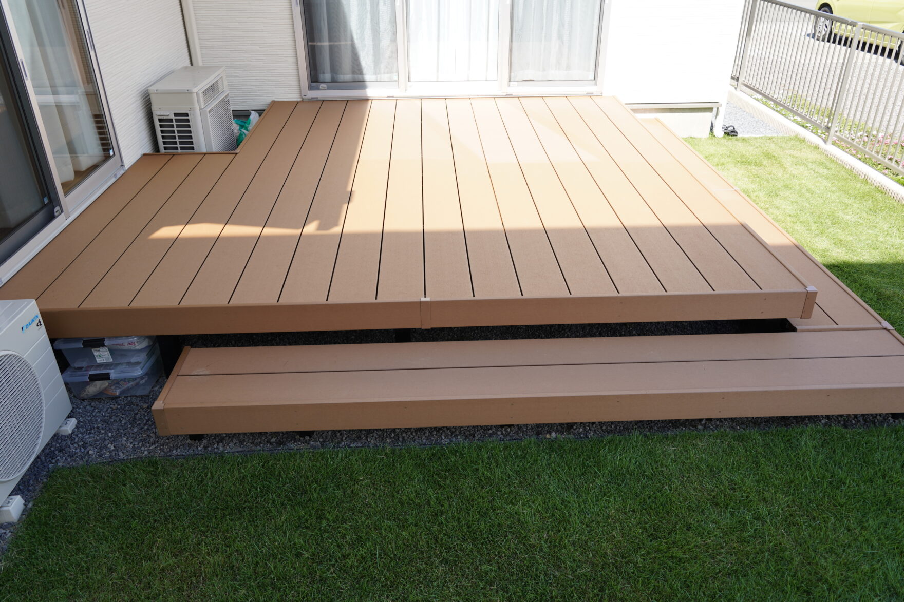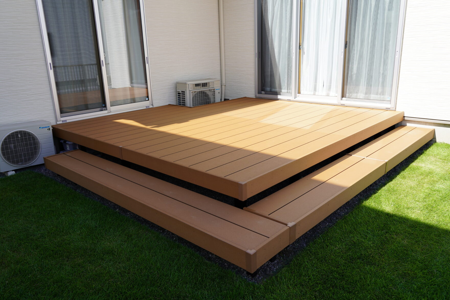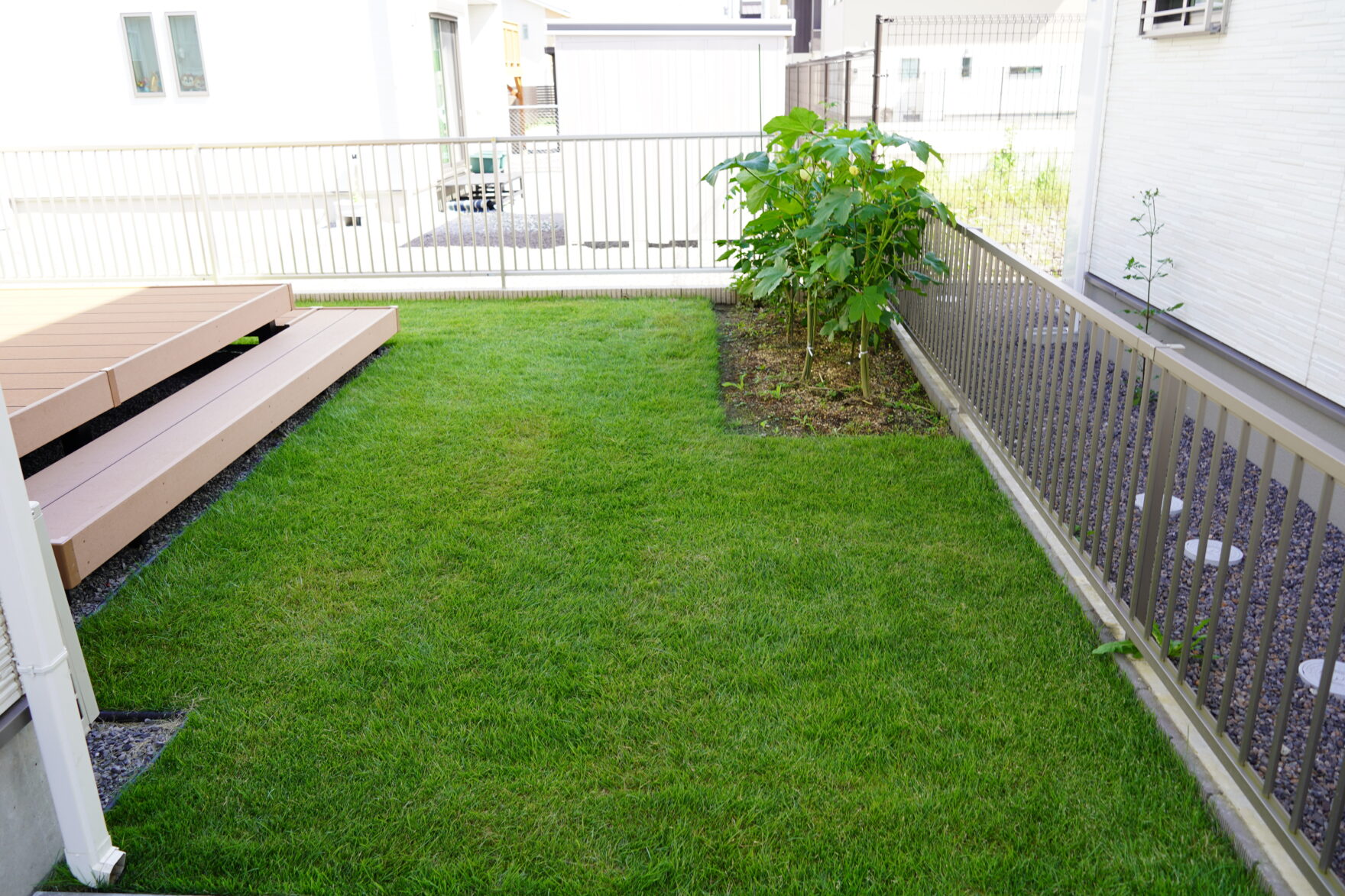 中庭のデッキは、休日の晴れ間に家族団欒もできるよう広々としたスペースに仕上げました。※デッキ・・・三協アルミ:ひとと木2